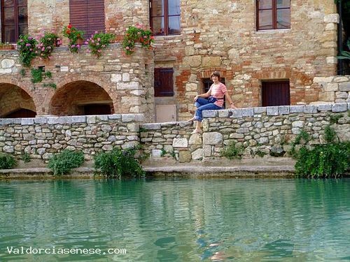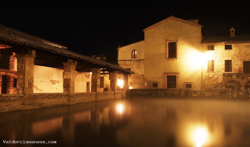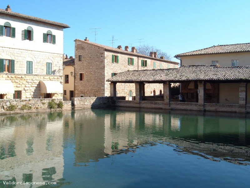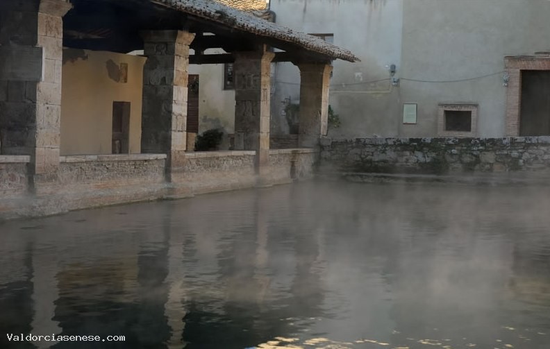Intorno alla vasca si possono ancora vedere le antiche abitazioni, da sempre abitate dai pochi residentii e dai molti visitatori che vi hanno fatto tappa per godere dei benefici terapeutici derivanti dalle abbondanti acque termali a disposizione.
