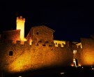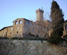 Il castello di Poggio alle Muraè un grande castello a pianta quadrangolare formato da più corpi articolati intorno ad un cortile porticato con un’alta torre e mura di cinta merlate.