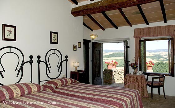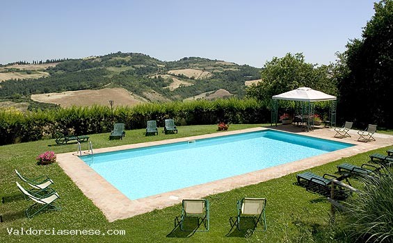 The farm covers 50 ha. cultivated with vines, olive trees, fields and woods. Accommodations: rooms with bath in 2 independent houses; Podere l’Elmo has 7 rooms with bath and Podere San Giuseppe has 5 rooms with bath; heated. Facilities: pool, children’s games, bocce court, ping-pong, excursions and walks, archery, bicycle rental. Products: honey and wine.