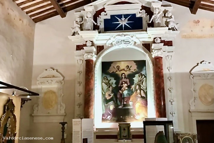 The Art Hall St. John, in the historical center of the country, was founded by the will of the City, of the Parish of Saints Stephen and Worthy, the tourist office of Castiglione d'Orcia, to bring together and make it visible to the public on the five paintings Table performed by prominent Sienese artists of the fourteenth and fifteenth centuries, from the churches of Castiglione d'Orcia (Saints Stephen and Worthy, St. Mary Magdalene, Corpus Christi, St. John the Baptist) and Rocca d'Orcia (San Simeon, San Sebastian, Madonna di Manno). Only the early masterpiece by Pietro Lorenzetti, Madonna and Child, is kept in the Parish of Saints Stephen and Worthy, the only one still called upon to act as a devotional image, a very venerated with the title of "Our Lady of Grace." After long years of waiting and working, the small Art Hall, was inaugurated in 2006. Around the precious paintings on wood were collected sacred vessels and liturgical furnishings belonging to the churches and to the speakers of the two communities. Among the exhibits, in addition to traditional altar accessories, furnishings prevail linked to the cult and to the functions of the numerous brotherhoods in the area. The church of the Compagnia di San Giovanni Battista, home to the small museum and recently become property of the City, has undergone a painstaking renovation and restoration architettonicoe functional. The staging successful, was made with natural maple wood walls, equipped to collect paintings and furnishings. Other support elements in maple with iron fittings complement the interior design. The fiber optic light, cold light, with specifications suitable for the proper conservation of works of art, environment ensures an intimate and evocative. In the building of a single hall, the monumental altar is preserved stucco faux marble, with a richly decorated, with marbling almost entirely rebuilt during a recent restoration.