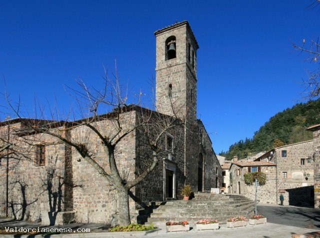 Le prime notizie sulla chiesa risalgono al 1224. Nel 1578 se ne trova traccia come pieve. Seppure soggetta a molti interventi, mostra ancora caratteri romanici. E’costruita ad una sola navata con copertura a capriate. La parte terminale è più ampia e ha uno schema basilicale. La facciata moltosemplice, con un portale ricassato e, sopra questo, una bifora. Il campanile è invece moderno.