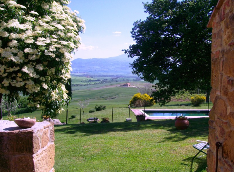 It is situated in a wonderfully panoramic position in the middle of the Artistic and natural Park of The Val d'Orcia, within easy reach of towns and villages (two kilometres from Pienza, two from Monticchiello, ten from Montepulciano).Thus gives its guests the possibility of combining a healthy and relaxing holiday with visits of artistic interest, cultural meetings and walks in a beautiful countryside.