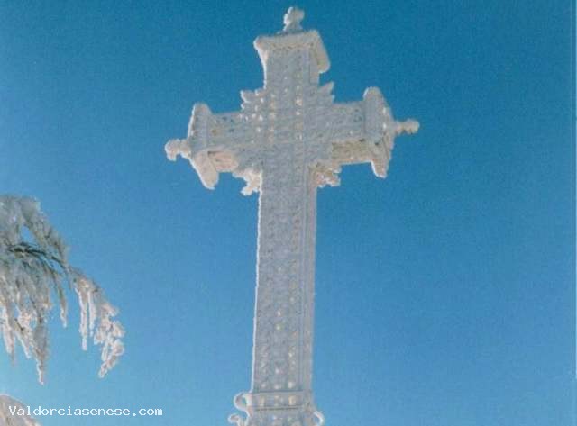 La Grande Croce in ferro battuto, alta ben 22 metri, fu realizzata fra il 1900 ed il 1910dalle officine Zalaffi di Siena, su indicazione di Papa Leone XIII che nel 1900, per festeggiare l'Anno Santo, suggerì alle popolazioni cattoliche di innalzare segni di redenzione sulle montagne più alte d'Italia.