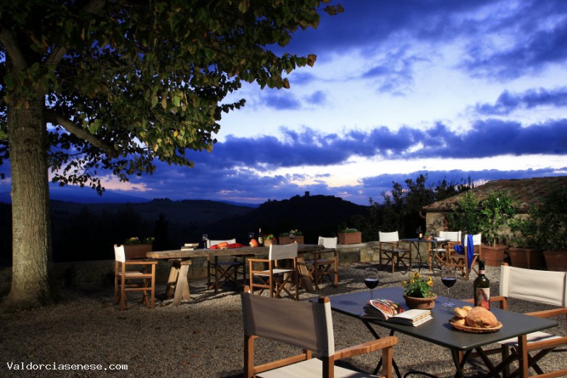 At 500m altitude, the estate sits on a hilltop overlooking the jewels of Tuscan medieval and renaissance architecture: Montepulciano, Pienza, and the hamlet of Monticchiello. The views spread out over the valleys of Val di Chiana, Monte Amiata and Val d'Orcia, where the historic little towns of San Quirico, Rocca, Castiglione, Bagno Vignoni, Montalcino, Montefolloncio and Buonconvento are nestled in the landscape.