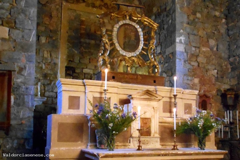 The church is in Gothic style, the façade bears a pointed portal with architrave supported by corbels with volutes, perhaps reassembled but presumably fourteenth century. However, the current appearance of the religious building appears very much altered, with reconstructions dating back to the 16th century.