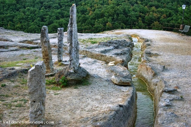 Scavati nella roccia sono anche le condotte d'acqua, le vasche di accumulo e le strade di accesso.