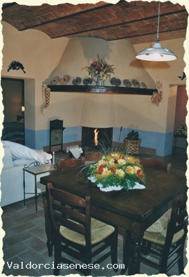 The farm is in the open countryside, ideal for family stays. Accommodations: apartments, one sleeping 4 with cooking area and fireplace and bath/shower, and one larger one sleeping 4 with kitchen/living room with large open fireplace and bath/shower, plus one double room with bath. Period furnishings.