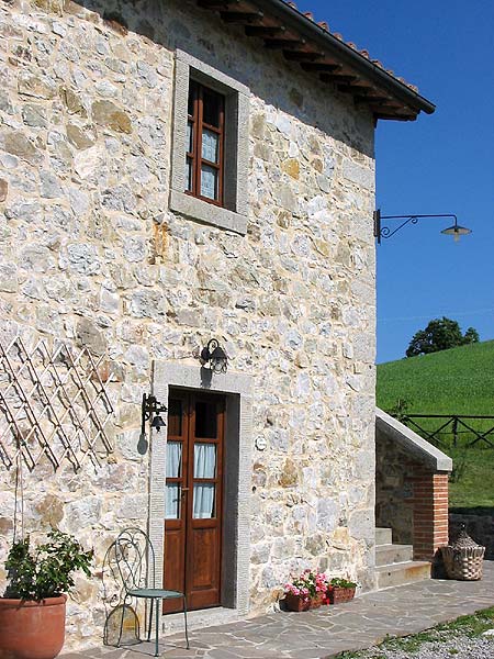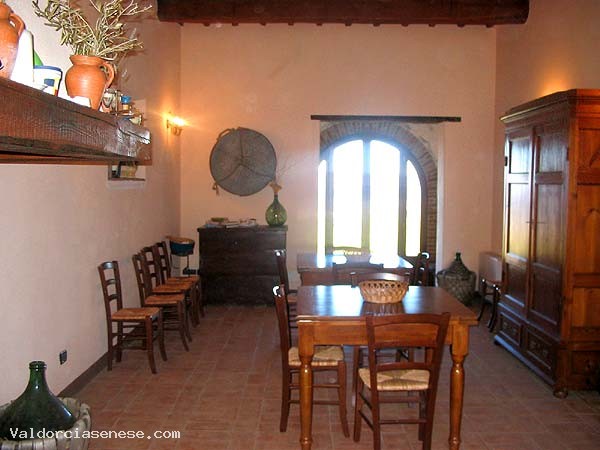 The farm was restaured according to the tradition, with cotto floors, wooden beams and dyed plasterwork.
