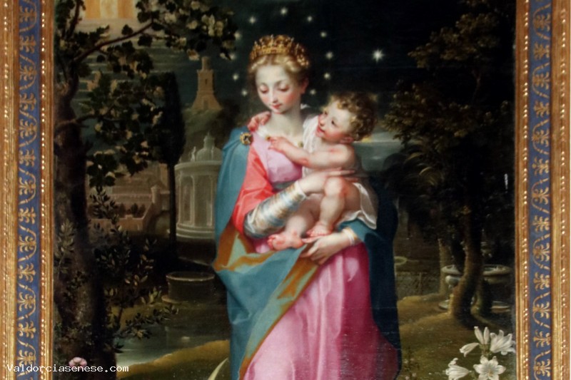 Francesco Vanni ha unito in questo dipinto la rappresentazione dei simboli devozionali attribuiti alla Vergine con la raffigurazione di un paesaggio reale, utilizzando elementi figurativi desunti dal Barocci e recuperati dalla propria esperienza nell'ambiente romano.