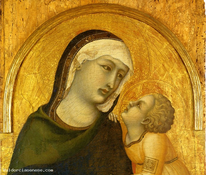 La straordinaria opera, parte centrale di un polittico, raffigura con estrema eleganza la Madonna col bambino che, teneramente abbandonato sul braccio materno e con la testa di profilo reclinata all’indietro, sembra cercarne lo sguardo in un dolce e delicatissimo moto d’affetto. In questo capolavoro della pittura senese Pietro Lorenzetti ha ormai assimilato le novità introdotte dalla pittura di Duccio di Buoninsegna e ha acquisito con estremo entusiasmo gli insegnamenti di Giotto.