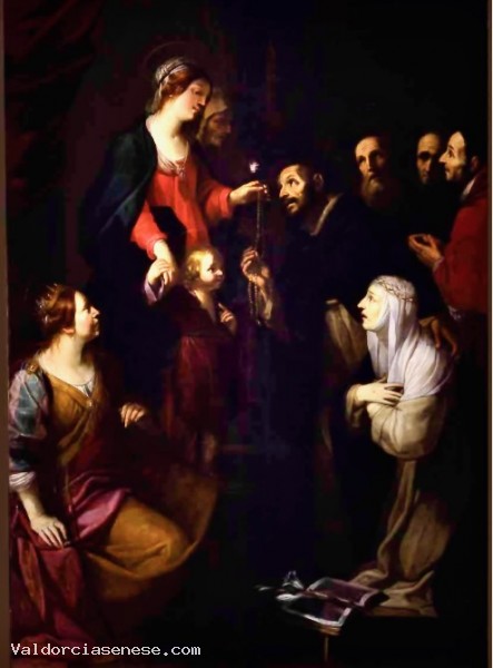 Il dipinto in origine era collocato sul secondo altare a destra, la cui decorazione era arricchita da tredici telette dipinte ad olio raffiguranti i Misteri del Rosario.