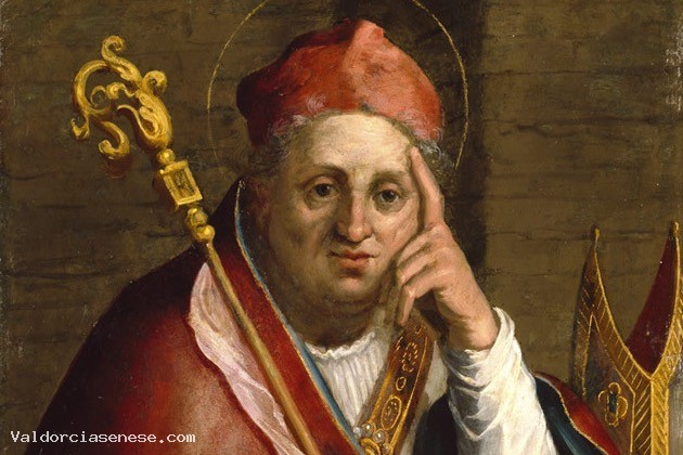 Il piccolo dipinto su rame è stato riconosciuto dalla critica quale testimonianza della fase più antica dell’attività pittorica di Francesco Vanni: in quanto vescovo di Ippona, Agostino è contrassegnato dalle insegne vescovili - quali la mitra posata accanto al braccio sinistro e il pastorale poggiato contro la spalla destra. Accanto a lui un bimbo biondo e paffuto tiene in mano un oggetto simile ad un mestolo di legno. La presenza del bimbo e l’espressione pensosa di Agostino sembrano alludere ad un episodio leggendario della vita del Santo, legato allo spirito avido di sapienza e di conoscenza delle cose divine che fu proprio del Santo vescovo di Ippona: mentre passeggiava lungo la riva del mare meditando sulla natura della Trinità, Agostino si imbatté in un fanciullo che, scavata una buca nella sabbia, cercava invano di riempirla di acqua; fatta osservare al fanciullo l’inutilità del suo gesto, quello ribatté asserendo che le sue fatiche non erano tanto più inutili rispetto agli sforzi compiuti dall’umana intelligenza nel tentativo di penetrare i misteri divini.