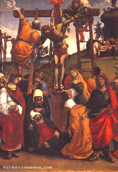 Oltre alla “Deposizione dalla Croce” gia’ nella chiesa/museo, realizzata dal pittore cortonese per la locale Confraternita dei disciplinati di Santa Maria e Santa Croce nel 1516, la mostra ospita il frammento con Testa di Cristo da oltre 50 anni mai esposto al pubblico, proveniente da collezione privata, la predella della Pala di Santa Cecilia, proveniente dalla Pinacoteca di Città di Castello e l’inedito disegno preparatorio della macchina d’altare lignea di Giampietro Zuccari del 1610 che incastona la “Deposizione”.