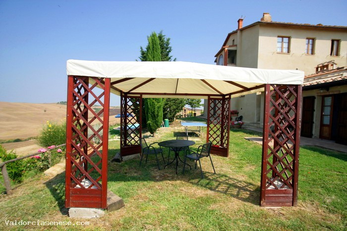 Durante il periodo estivo ci sarà a disposizione degli ospiti la piscina con le seguenti dimensioni : 4,30 x 9 m. Gli agriturismi con piscina consentono di trascorrere giornate al sole e al fresco in completo relax,magari sdraiati su un prato a leggere un libro in quasi totale silenzio,accompagnati soltanto dal lieve dondolio dell'acqua mossa dagli ospiti che di tanto in tanto vanno a rinfrescarsi quando d'estate il clima è torrido.A disposizione dei clienti : gazebo,ombrelloni,lettini,e sdraio.La piscina è la soluzione ideale ed è stata realizzata in posizione panoramica e pur essendo vicinissima all'abitazione ,rimane appartata garantendo così la privacy dei bagnanti.