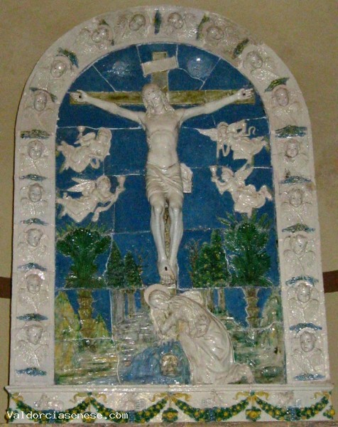 Grande bassorilievo, in ceramica invetriata, terminante ad arco nella parte superiore.
